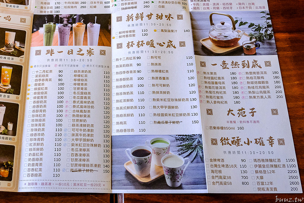 菜單上選擇多元,從招牌粥品、茶點到私房菜,再加上飲料等,相當豐富,而且還有附上餐點照片可以參考。