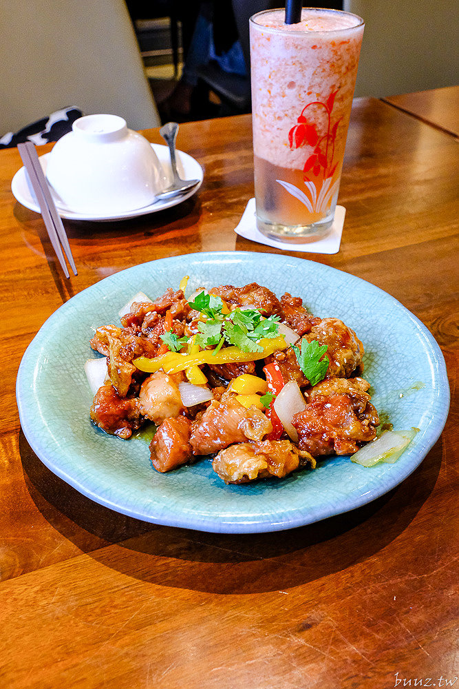 「風櫃斗梅汁嫩雞」巧妙地將梅子的酸甜與雞肉的鮮嫩結合,雞肉處理得非常軟嫩入味,而且每一塊雞肉外都沾附了梅汁。
