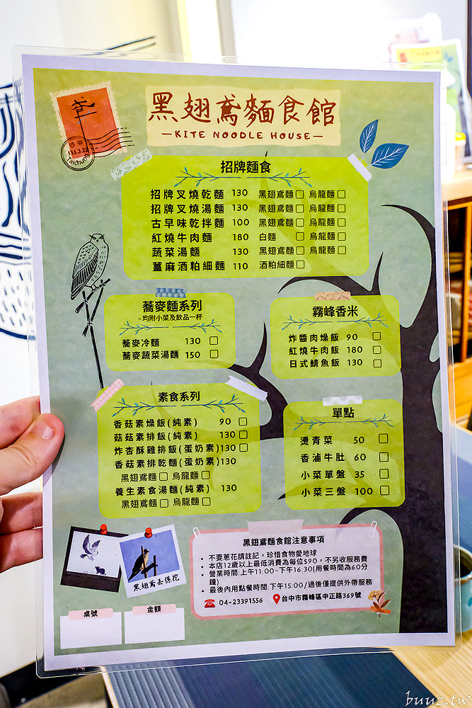 黑翅鳶麵食館 | 霧峰文青麵食,以在地生產黑翅鳶麵入餐,招牌叉燒湯麵,麵條微脆湯頭滋味清甜!
