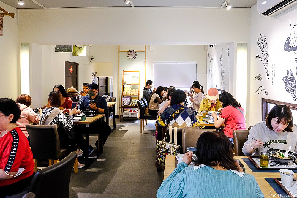 室內牆面有黑翅鳶、霧峰香米與在地生產的麵條的圖繪,整體融入在地文化,很有文青感。