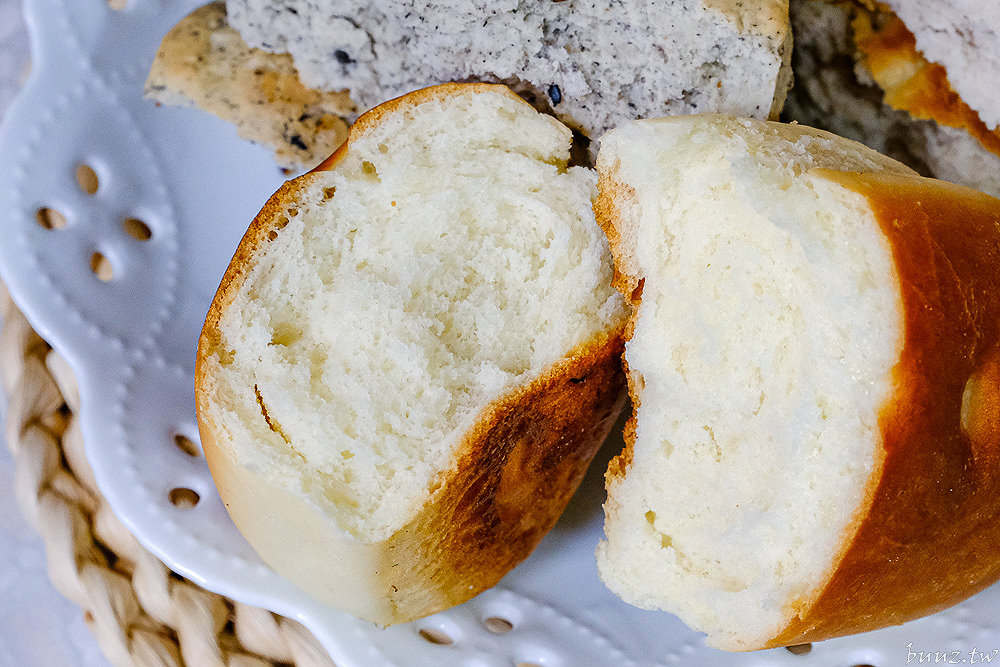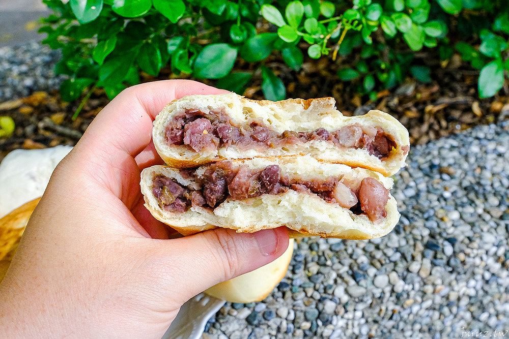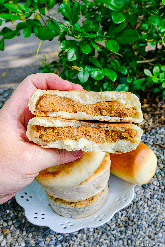 饅頭有分一般跟烤饅頭,當天買了一顆烤饅頭,吃起了頗為扎實有咬勁,咀嚼時有著淡淡麵香。