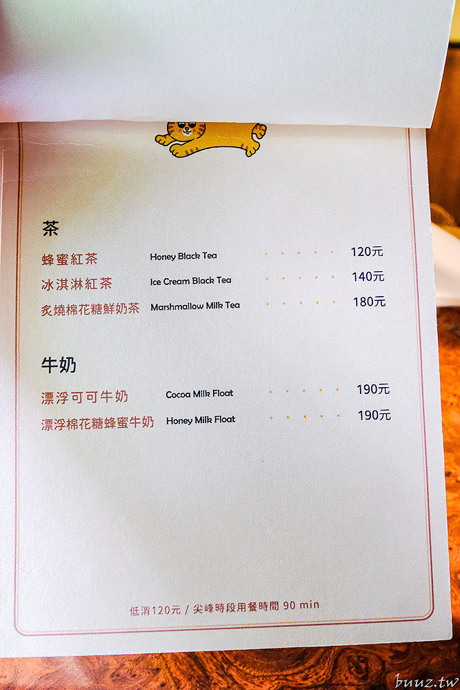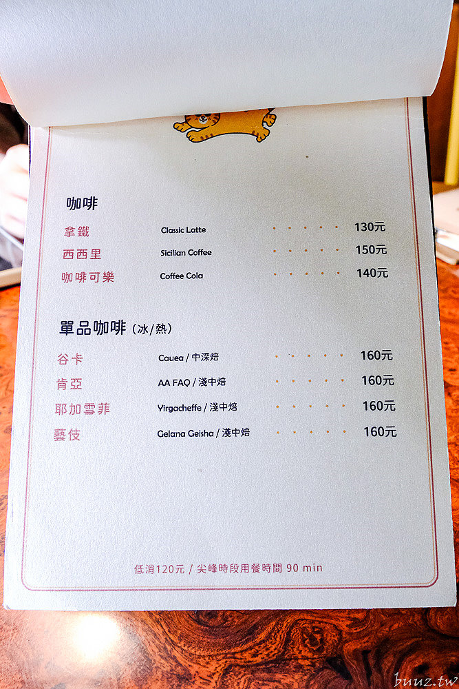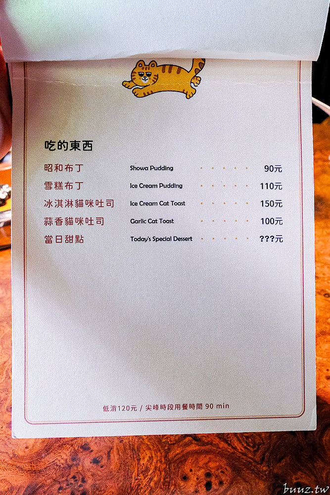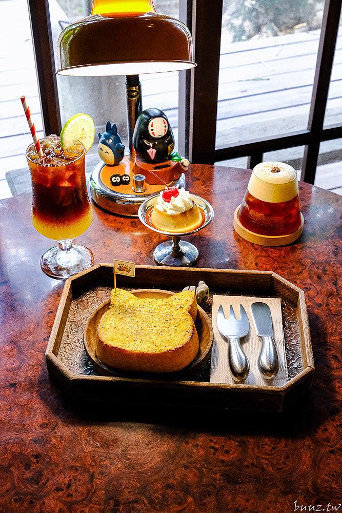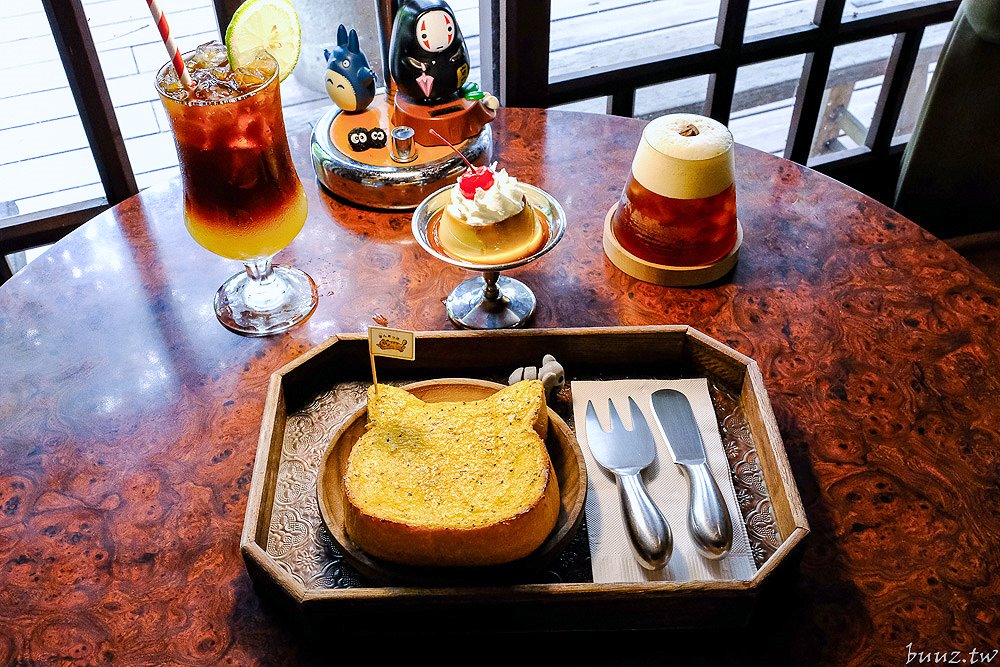 除了飲品還有布丁、吐司這些甜點可以點,尤其店內的貓咪厚片吐司非常吸睛可愛,也蠻多客人會點來配咖啡。