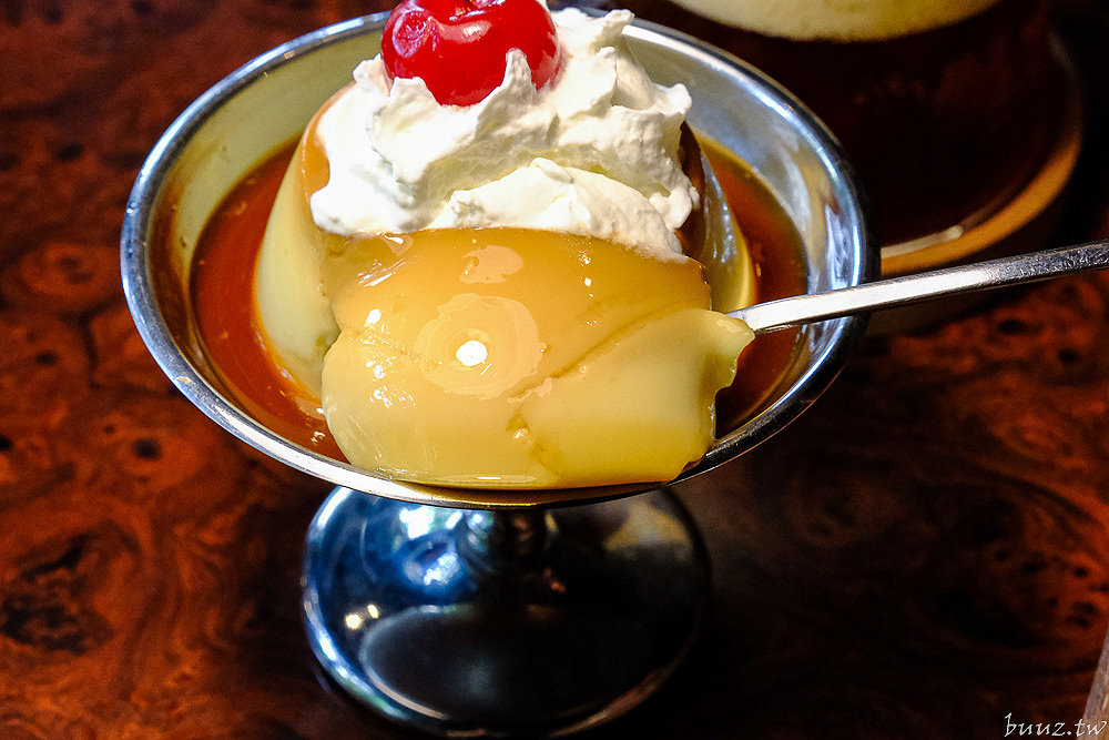 「昭和布丁」搭配了鮮奶油跟櫻桃送上,布丁相當扎實綿密,微苦的焦糖襯托出蛋香馥郁的氣息,好吃又不會太甜膩,很推~