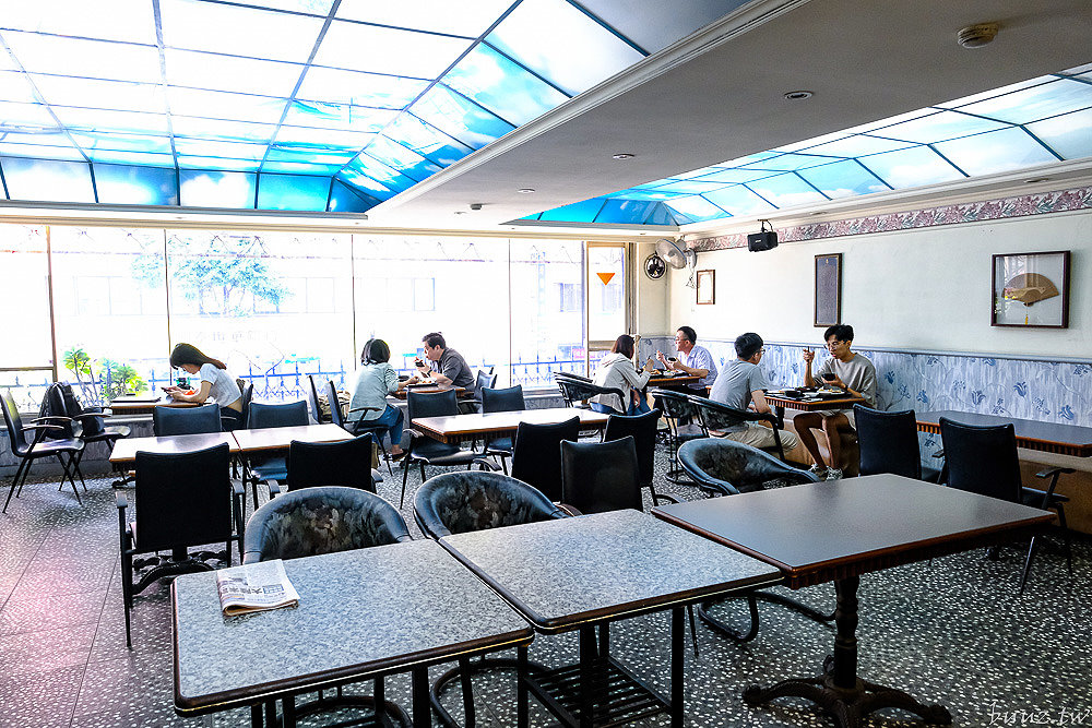 金G園簡餐咖啡」入口處就是從台中知名上海菜「陸園」旁邊的這個樓梯走上去二樓,一踏入店內是那種很熟悉的懷舊氛圍,有著木質桌椅、簡單的擺設,加上帶點年代感的空間配置,很像以前學生時期會來聚餐的簡餐咖啡館。