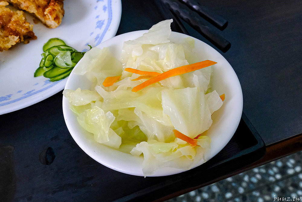 排骨是選用本土溫體豬里肌肉排製作,經過切割拍打等程序,再搭配店內獨門醬料醃製,麵衣酥脆,排骨入味有明顯的醃料鹹甜感,肉質紮實又軟嫩,配白飯吃很剛好。
