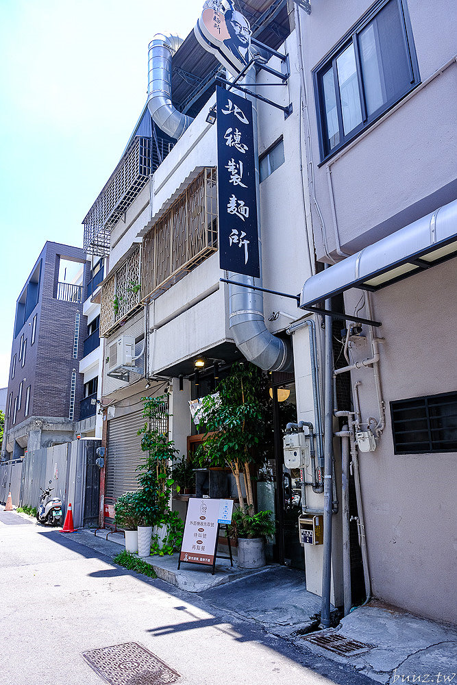 北穗製麵所」詳細的位置是在公益路巷弄內,招牌上方還有印製日本人老闆的圖樣,店面正前方則有擺放一台號碼牌,要進入前先抽號碼牌,等叫號再進入。