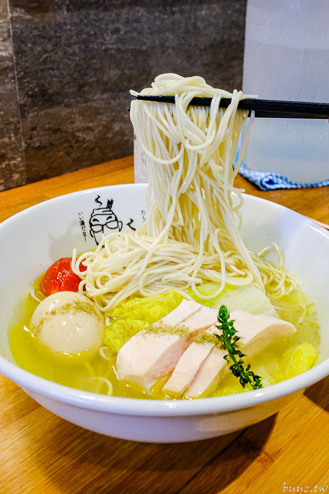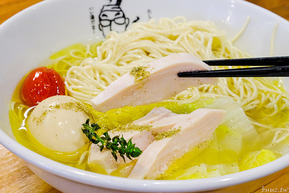 塩味清湯喝起來滋味高雅,此外還有著Olive橄欖油的香氣,用單純的塩味襯托雞胸肉及麵條麵香。