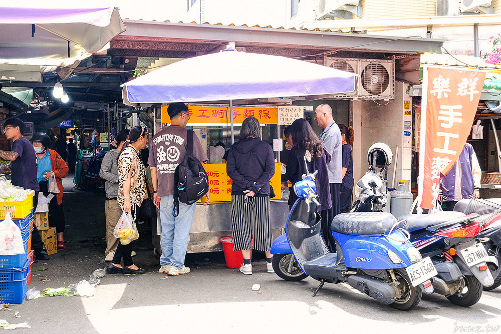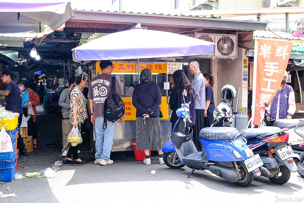 台中第五市場周邊可以說是麵線小吃匯集地,除了曾經介紹過像是超過30年陳記蚵仔麵線、自治街大腸麵線,還有樂群街上的加加麵線糊,以及這天吃到的樂群手工麵線同樣也是很多人會推薦的麵線美食,常常看見攤子旁大排長龍買麵線的人潮。