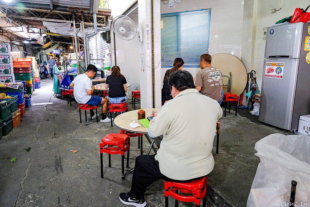攤位後方則有擺放幾張桌椅給內用客人使用,遇到人多時可能會有併桌的情況,不過客人們也都習慣這樣的用餐情景了~