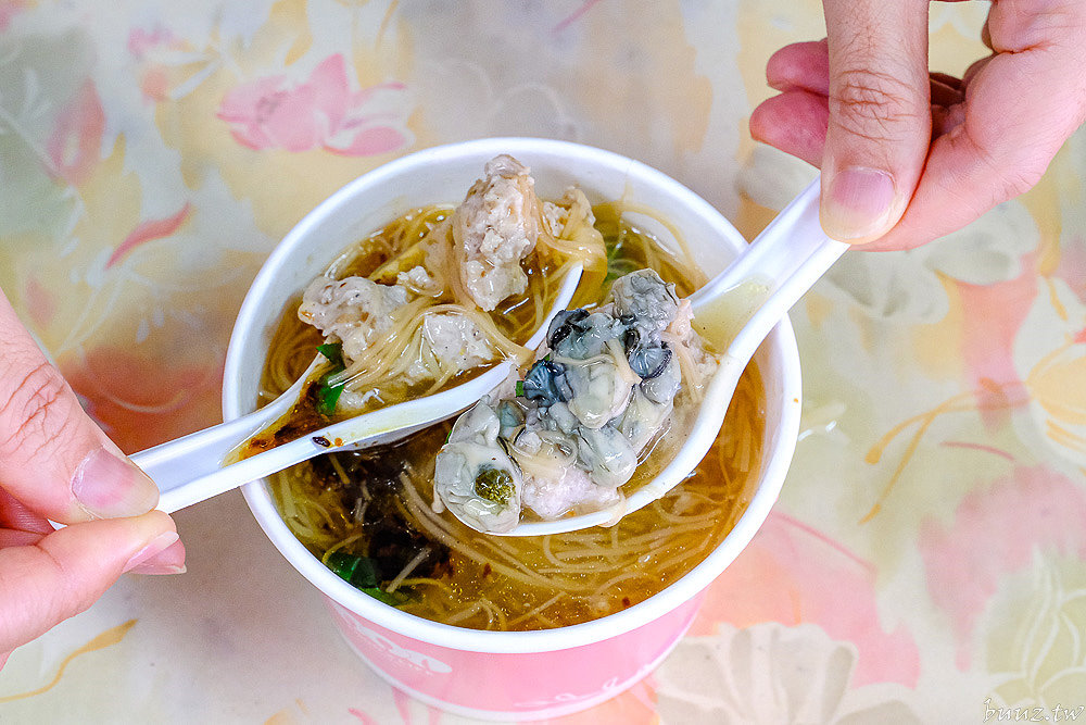 鮮蚵的個頭沒有很大,但吃起來很飽滿鮮美,估溜滑嫩口感配麵線吃很融洽。