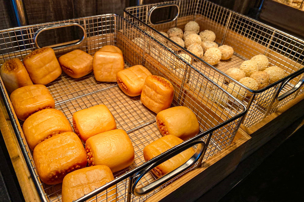 讓我們一路看過去,首先就是炸物熟食,有薯條、雞塊、小饅頭、芋泥球、甜不辣等。這些熟食可以直接拿了就吃不用等,小饅頭還可以淋煉乳,香甜奶味,超愛~