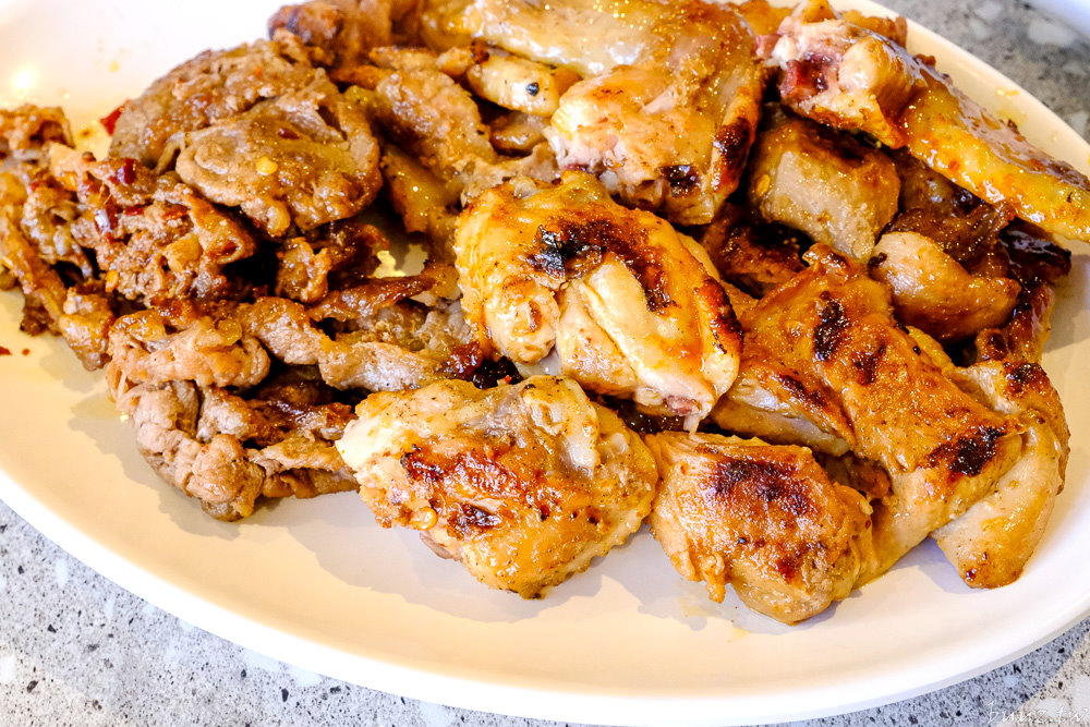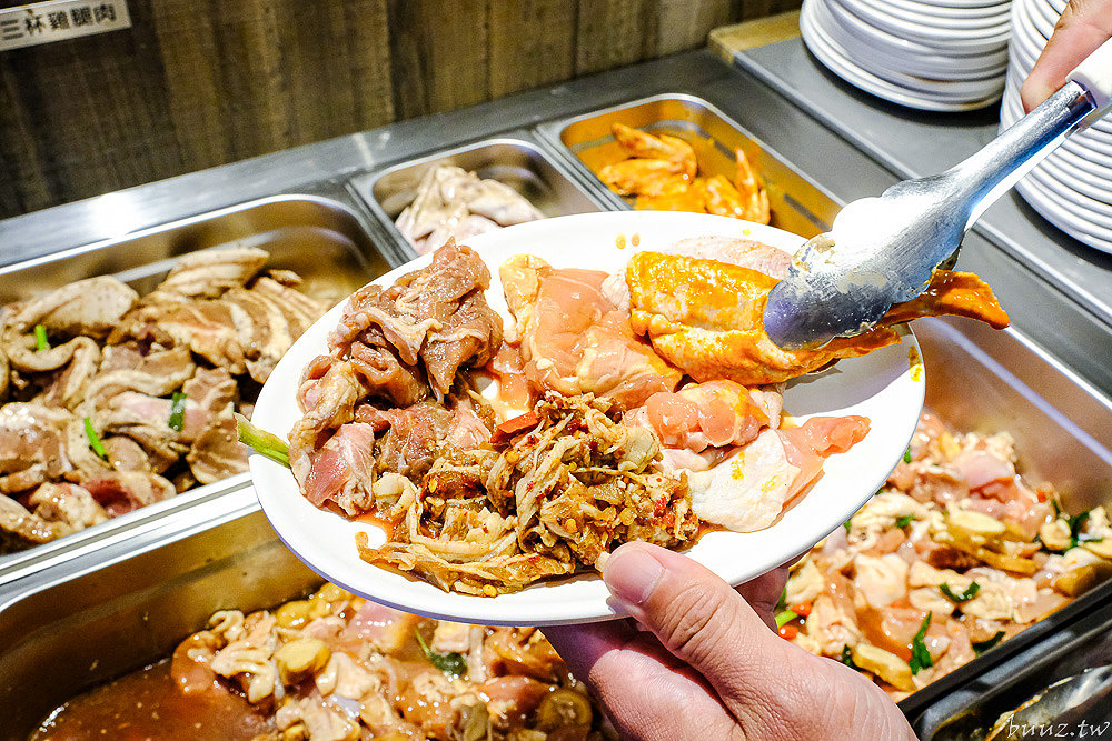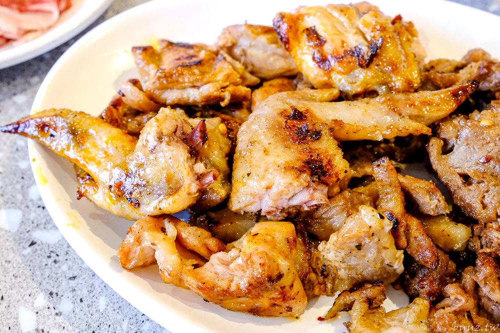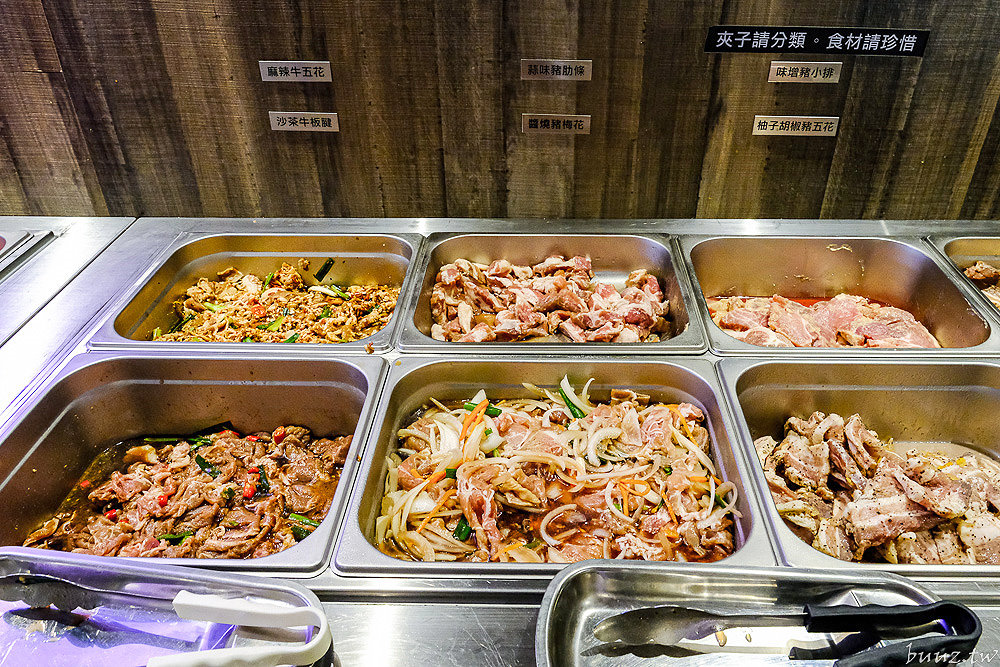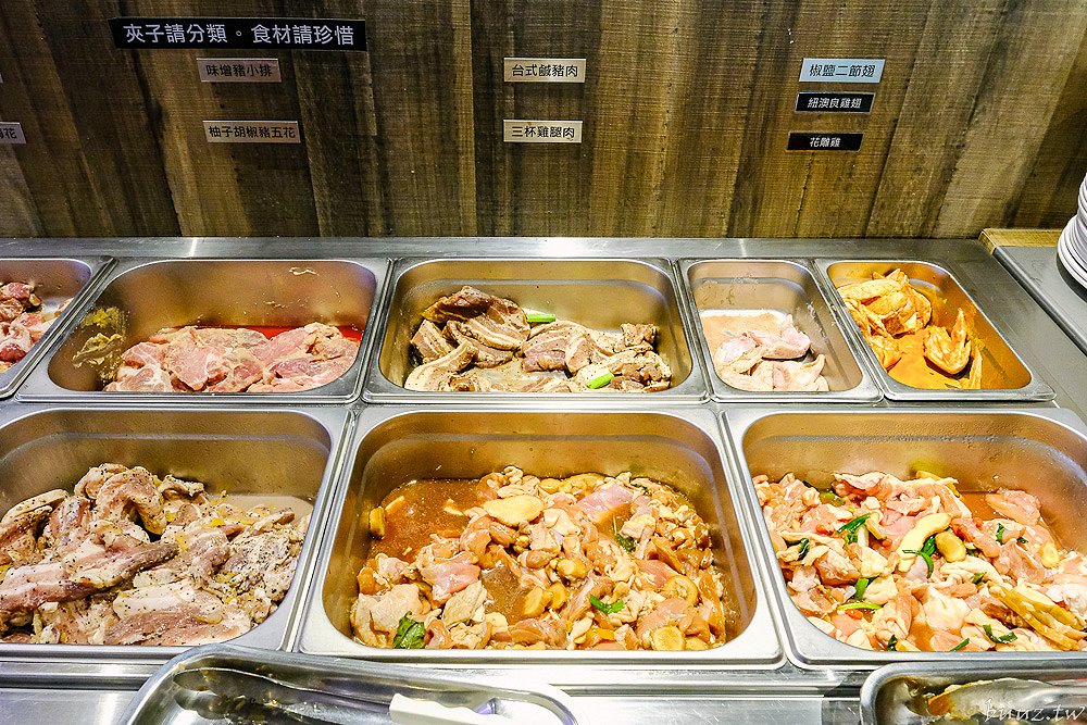 獨家調味的醃肉食材也很精采,有麻辣牛五花、沙茶牛板腱、醬燒豬梅花、味噌豬小排、柚子胡椒豬五花、台式鹹豬肉、三杯雞腿、花雕雞、紐澳良雞翅及椒鹽二節翅。