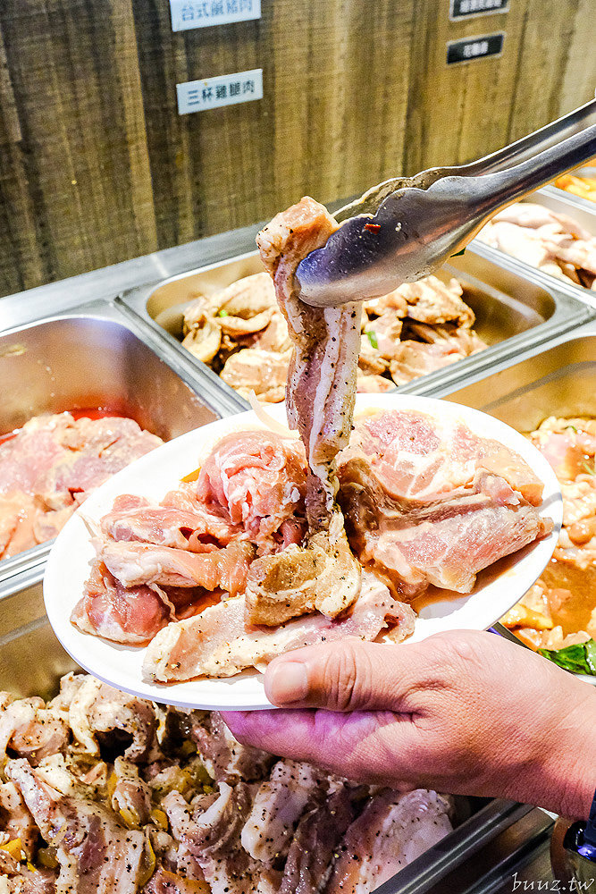 也有像是豬五花、鹹豬肉這類的厚切肉品,甚至雞腿肉、二節翅,相當豐富多元,可依照個人喜好自行拿。