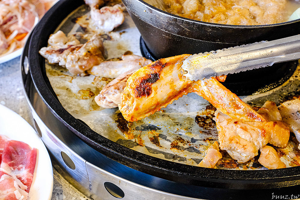 煮火鍋的當下,旁邊烤盤也陸續放上沙茶牛板腱、豬五花、鹹豬肉、三杯雞或是紐澳良雞翅去烤,看著肉片滋滋作響的模樣,好誘人阿~