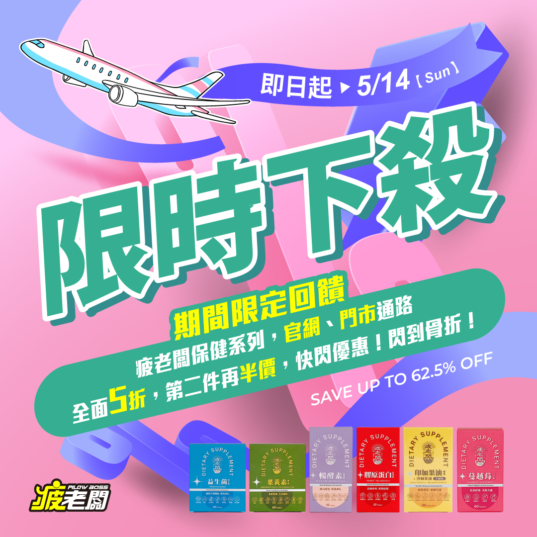 - 好讚2:門市、APP官網「疲老闆系列商品」每件88折、「疲老闆保健系列」每件$888。